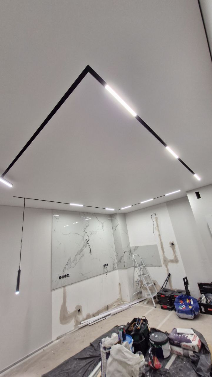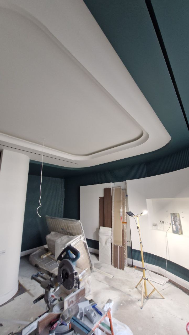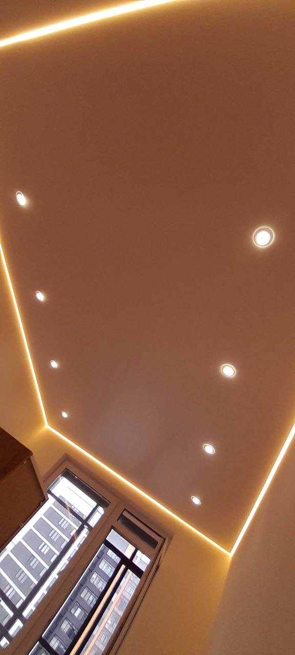 За это время выполнил десятки проектов — от небольших квартир до сложных дизайнерских решений с подсветкой и многоуровневыми конструкциями.